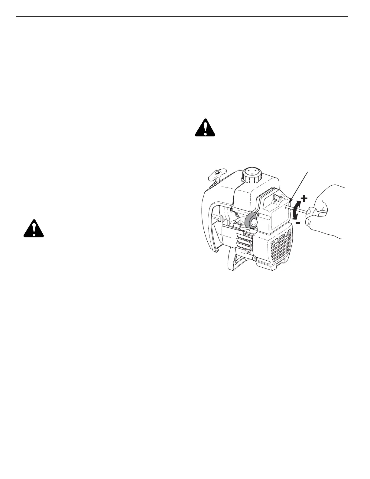 vis de réglage de ralenti. Voir Entretien du filtre à air.