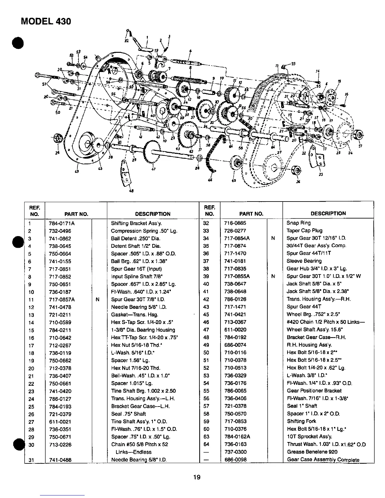 Yard Machines 430 - MODEL 430 PARTS LIST