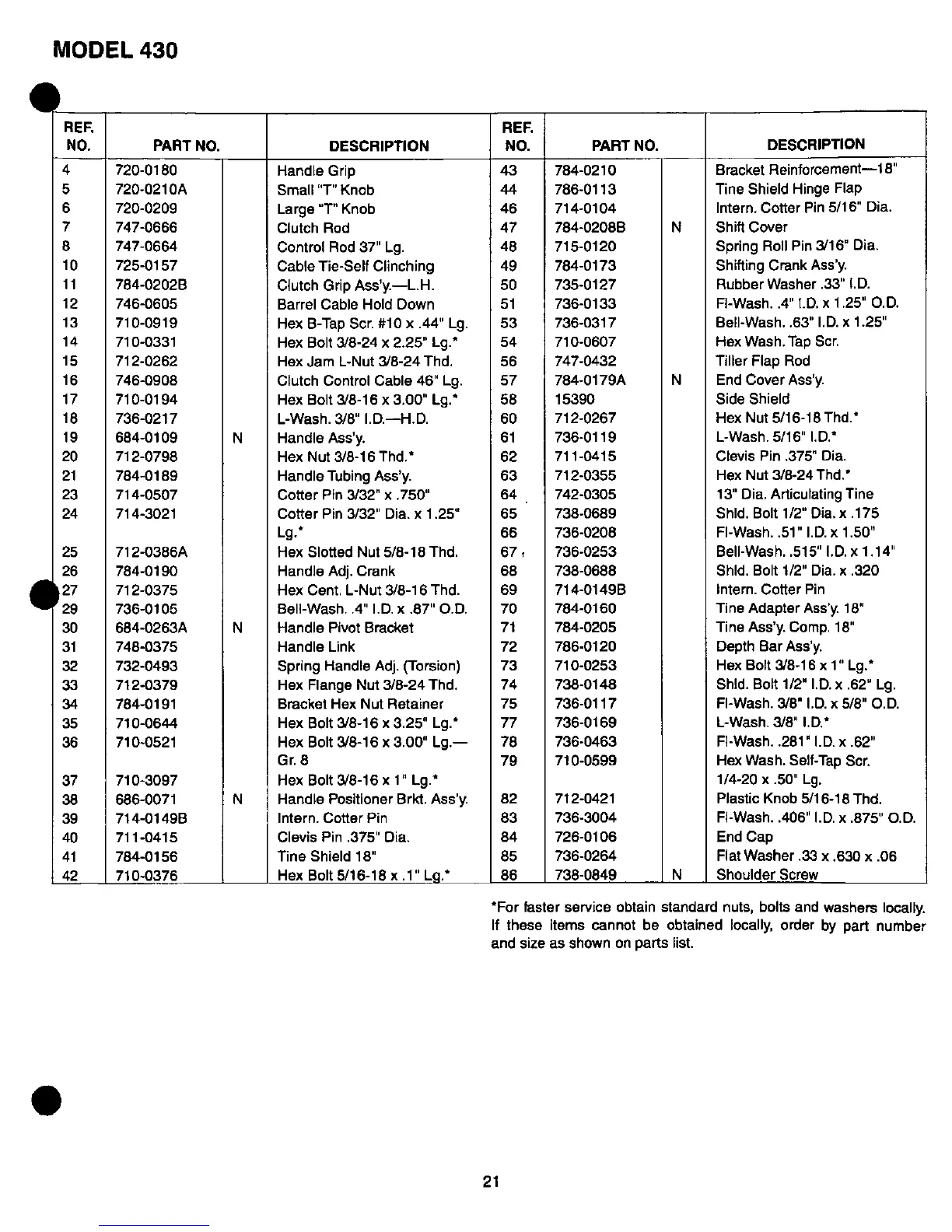 Yard Machines 430 - MODEL 430 PARTS LIST (CONTINUED)