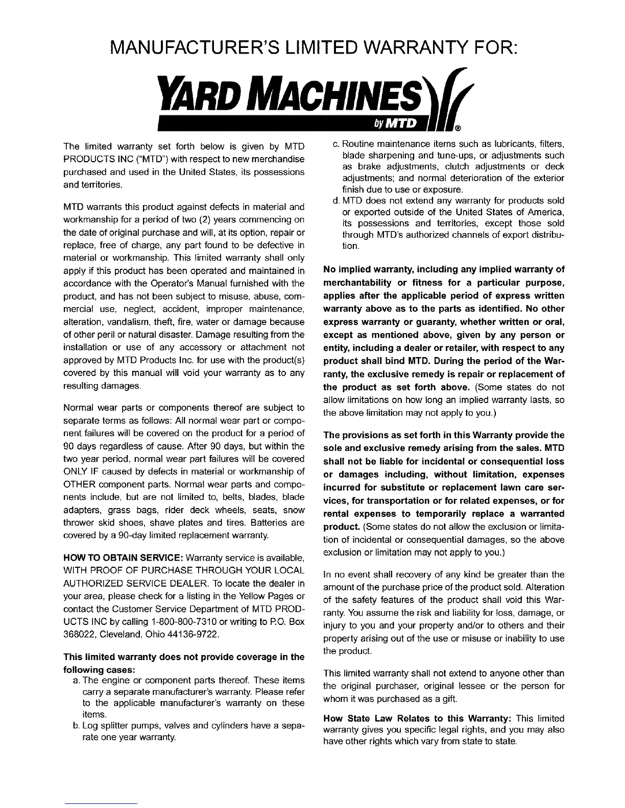HOW TO OBTAIN SERVICE: Warranty service is available,