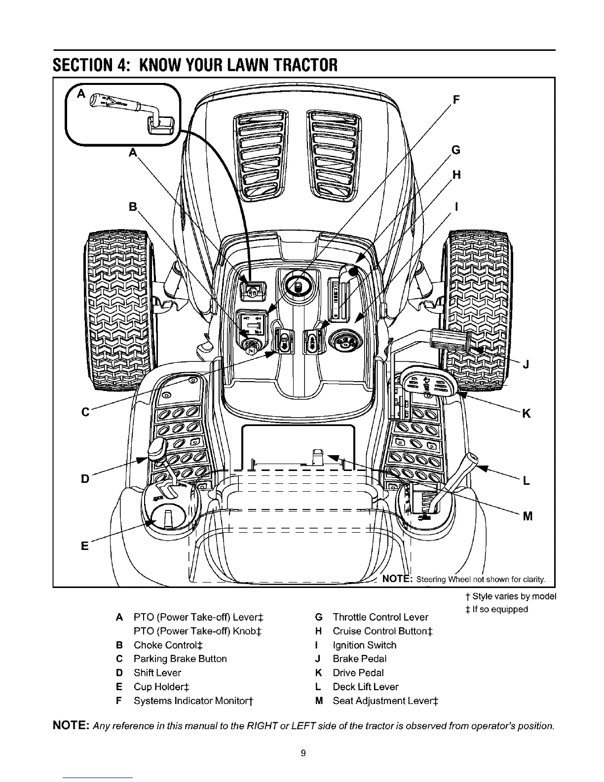 NOTE: Any reference in this manual to the RIGHT or LEFT side of the tractor is observed from operator's position.
