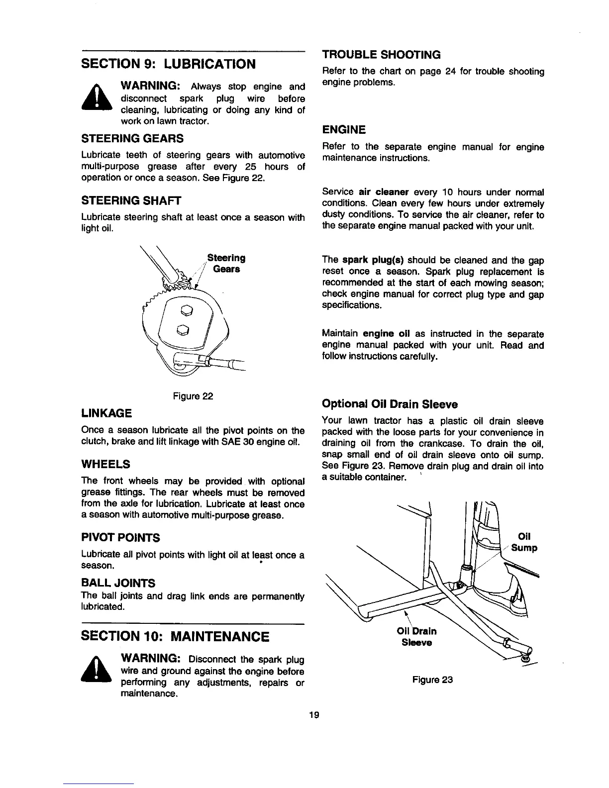 clutch, brake and lift linkage with SAE 30 engine oil.
