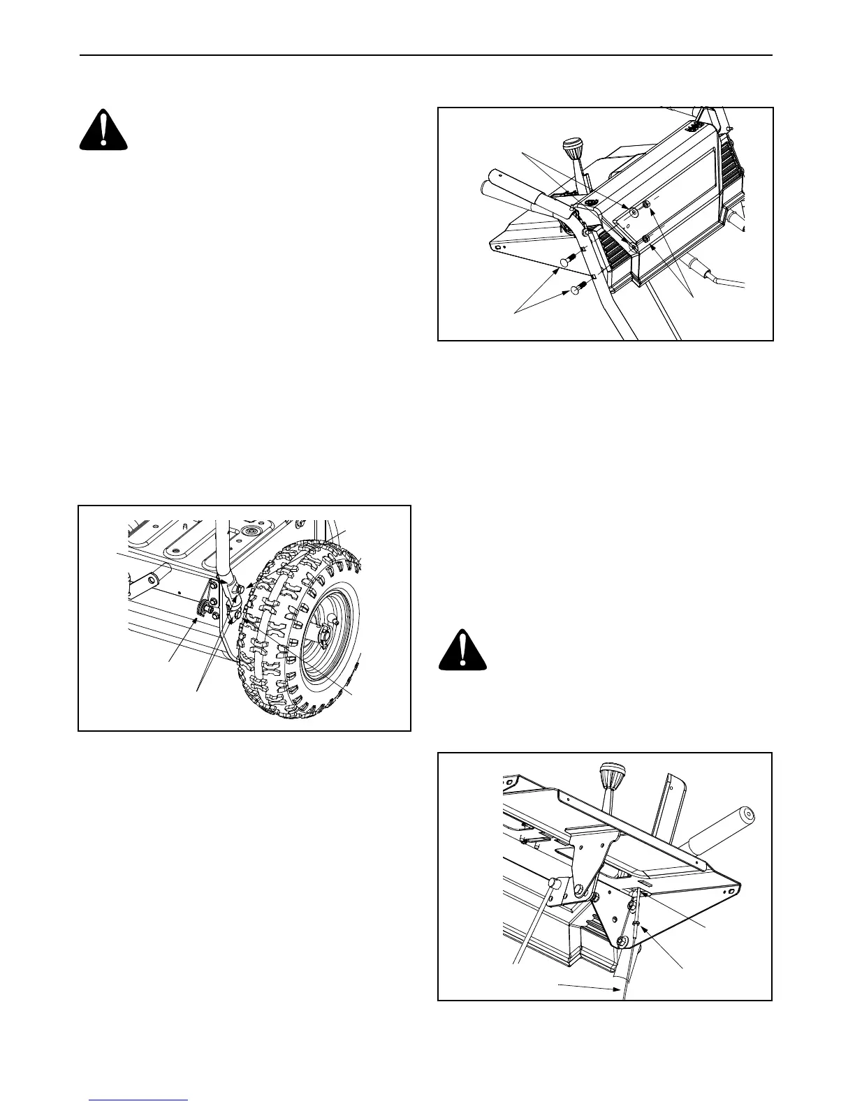 bottom of the handles to the snow thrower frame.