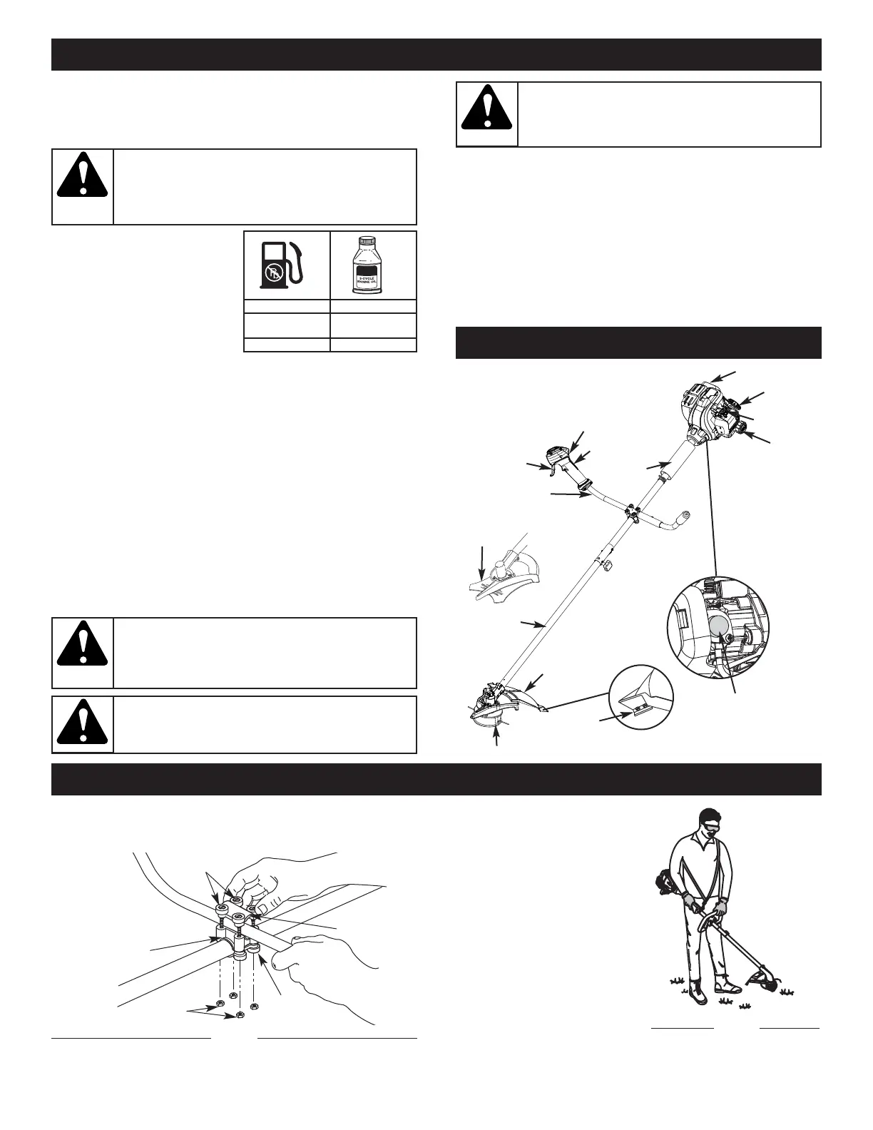 fuel in a separate fuel can. Use a 40:1 fuel/oil ratio. Do not mix them