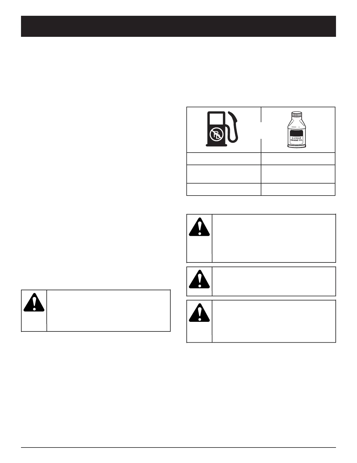 with unleaded gasoline in a separate fuel can. Use a 40:1