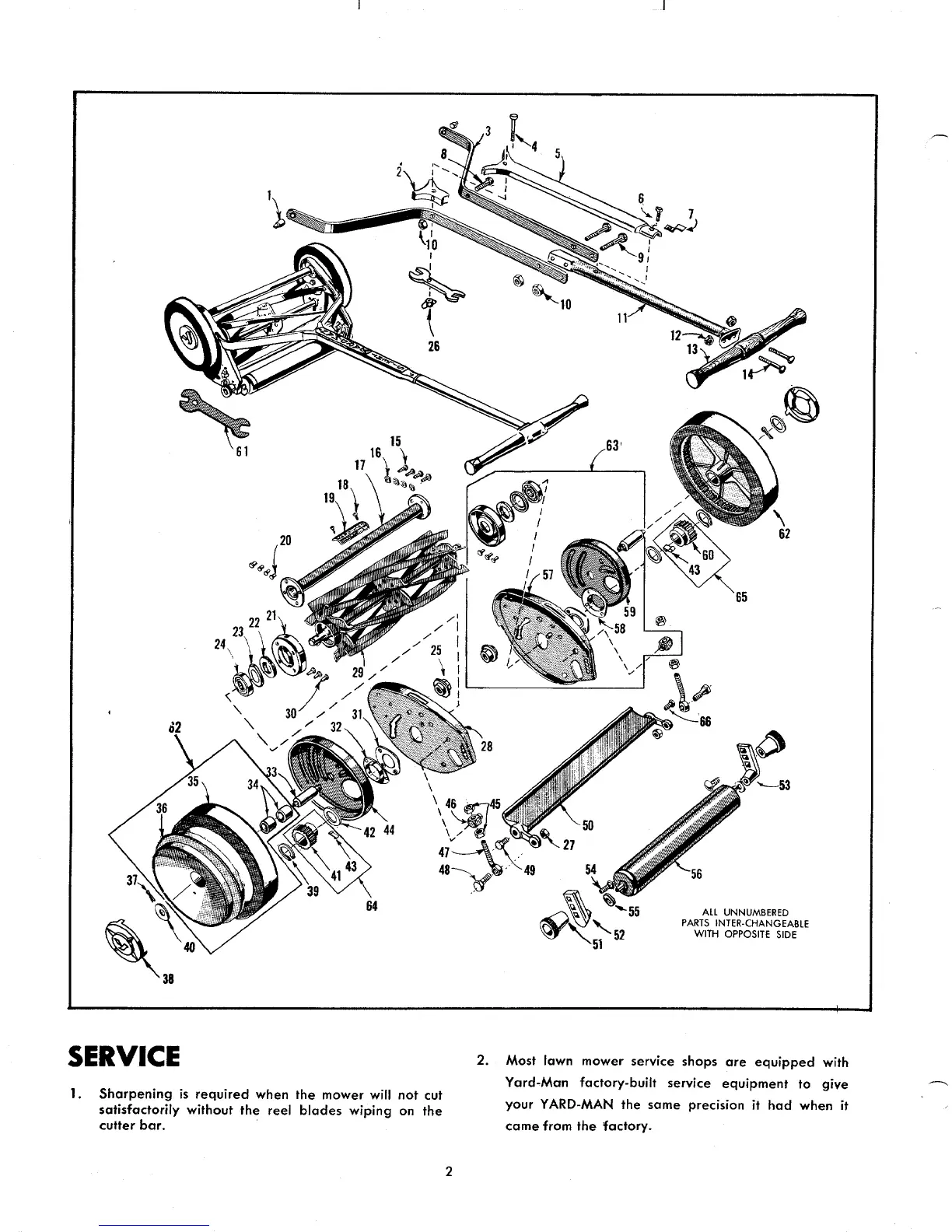 Yard-Man 1000-3 - Service; Sharpening; Factory-Built Service Equipment