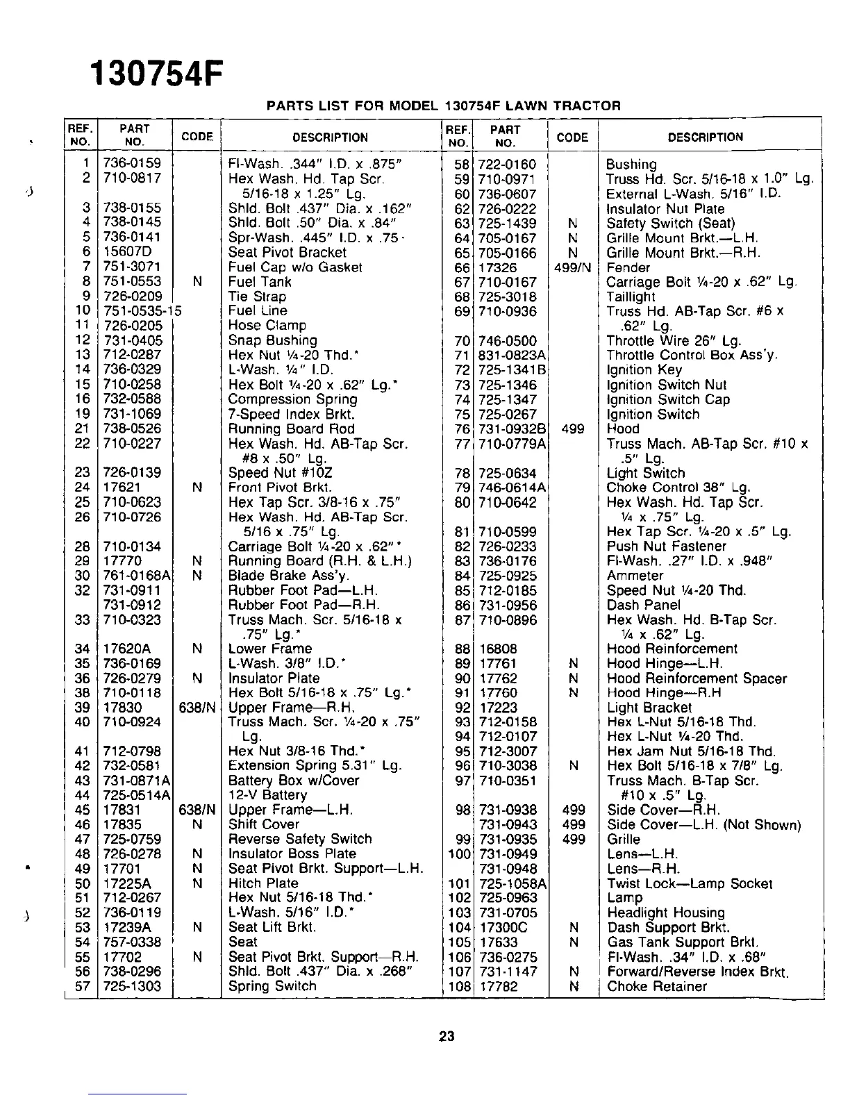 Yard-Man 130754F - PARTS LIST