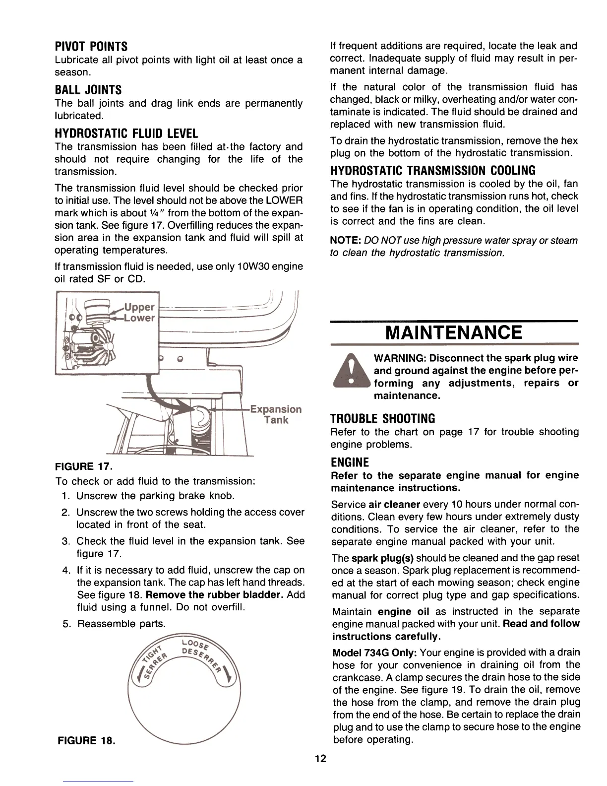 and fins. If the hydrostatic transmission runs hot, check