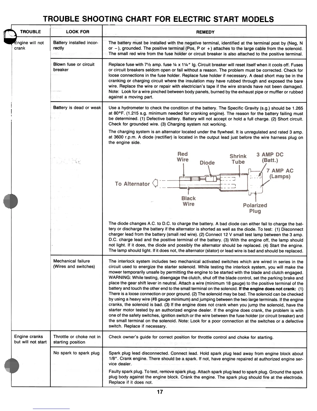 at 3600 r.p.m. A diode (rectifier) is located in the output lead just before the wire harness plug on