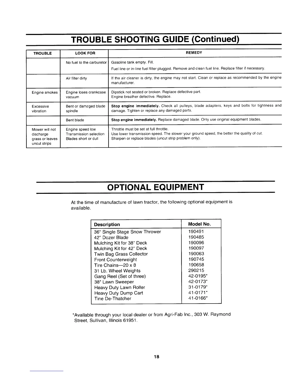 Yard-Man 132634E - Optional Equipment