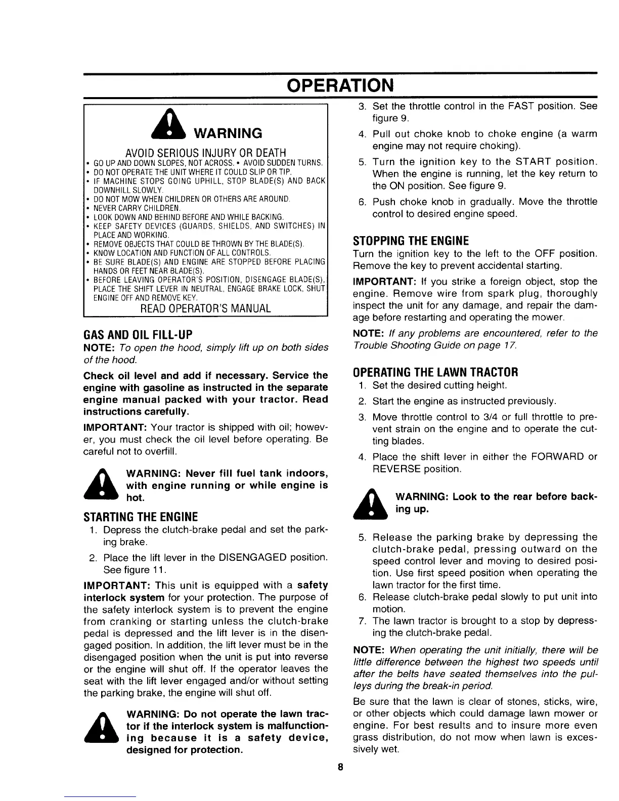 Yard-Man 132634E - Operation; Gas and Oil Fill-Up; Starting the Engine; Stopping the Engine