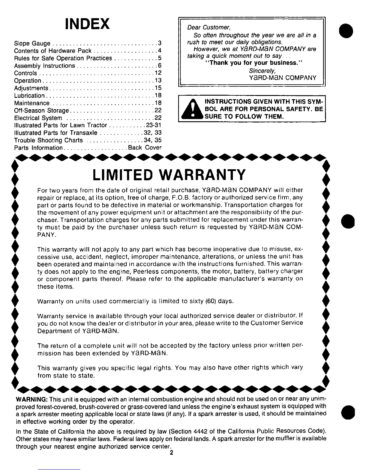Yard-Man 13504-8 - Limited Warranty