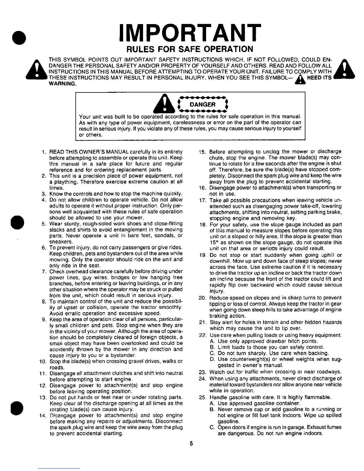 Yard-Man 13504-8 - Important Safety Rules