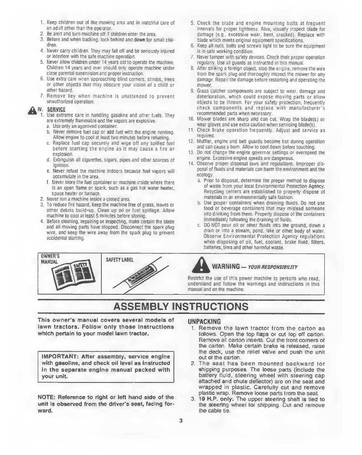 Yard-Man 135N604F401 - UNPACKING AND INITIAL SETUP