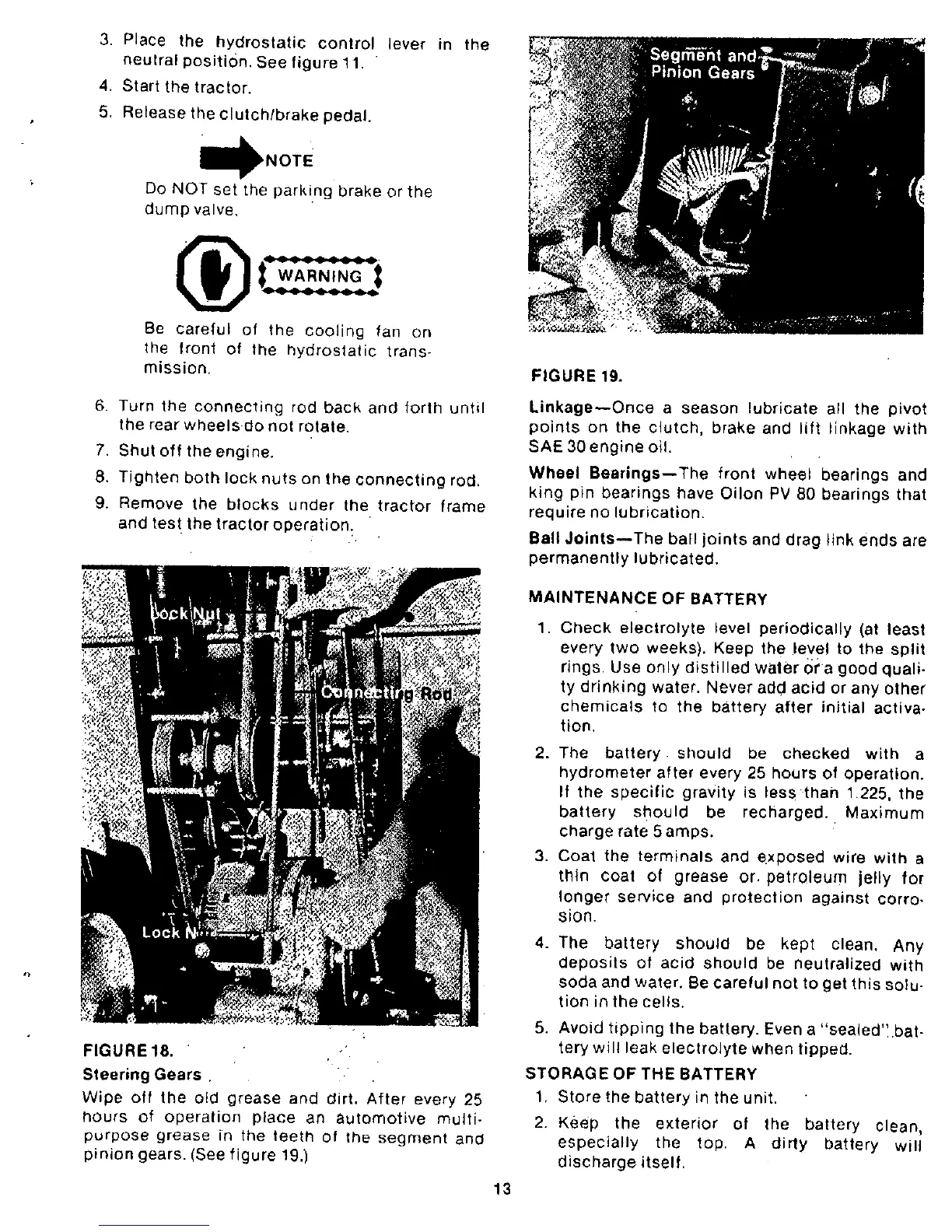 Yard-Man 13780-0 - Maintenance of Battery; Storage of the Battery; Steering Gears