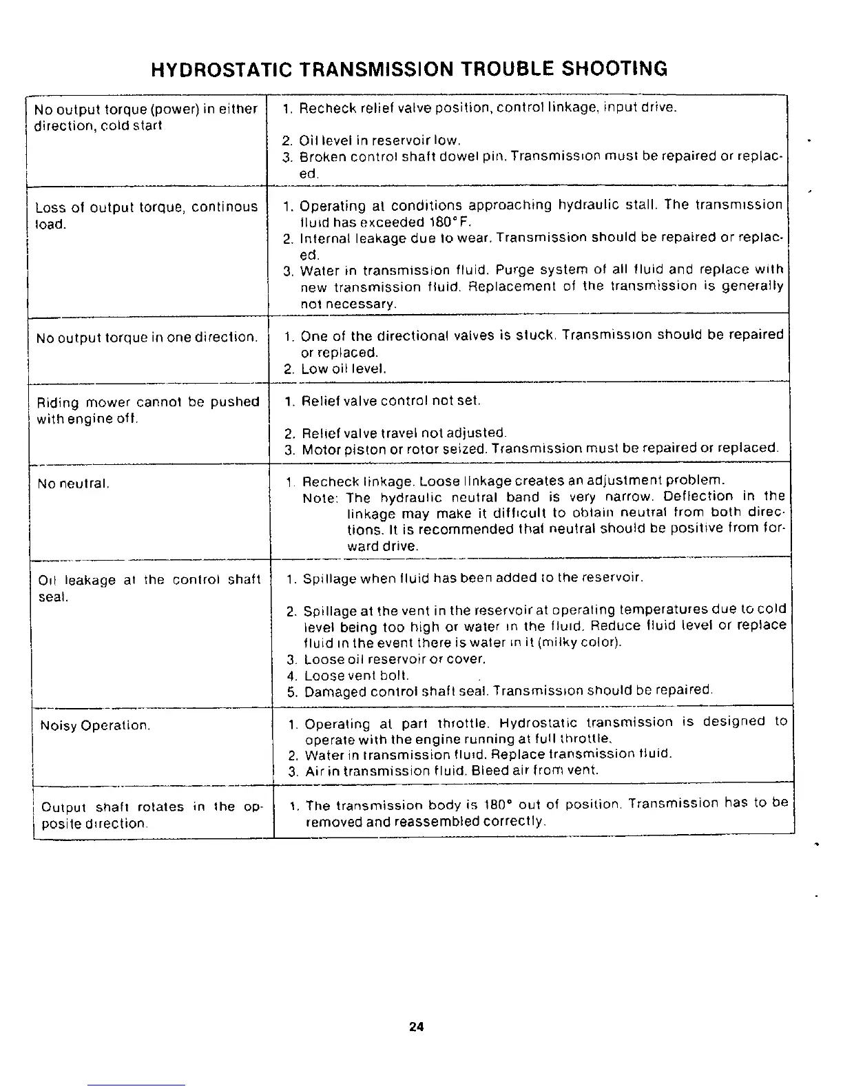 Yard-Man 13780-0 - Hydrostatic Transmission Troubleshooting