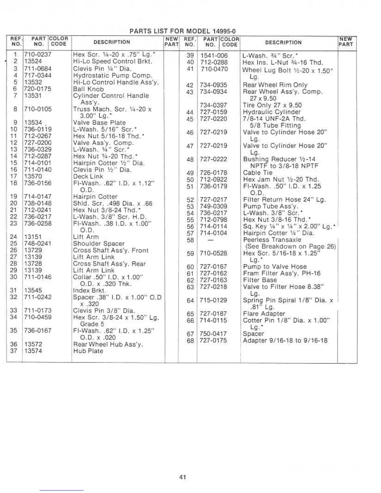 Yard-Man 14995-0 - PARTS LIST FOR MODEL 14995-0 (Hydraulic System)
