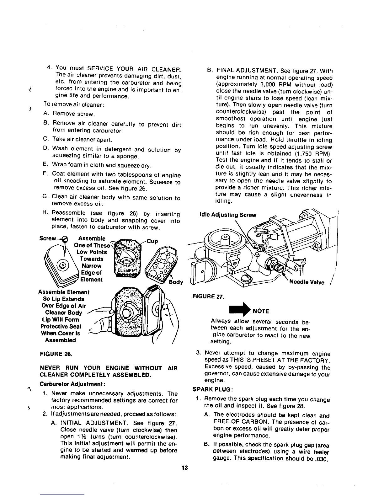 Yard-Man 21756-9 - Spark Plug; Carburetor Adjustment; To Remove Air Cleaner
