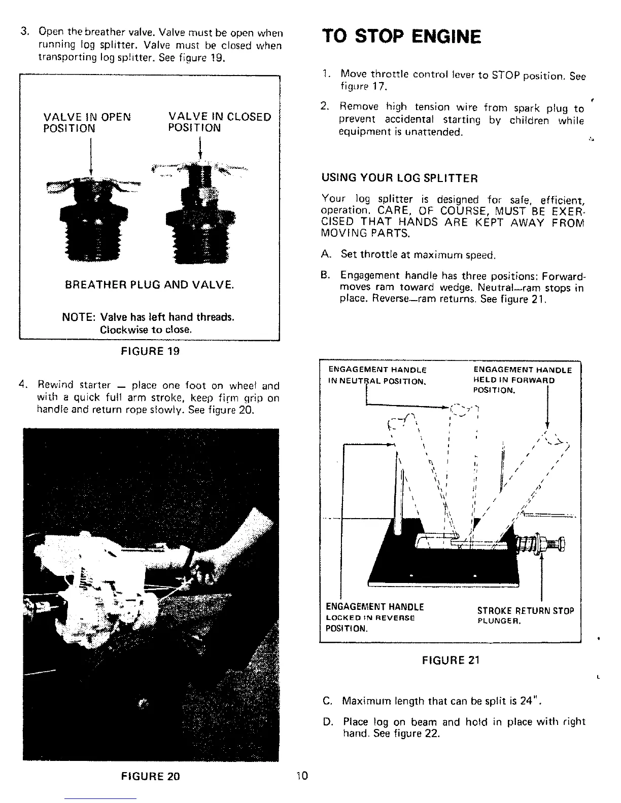 Yard-Man 24645-9 - To Stop Engine; Using Your Log Splitter