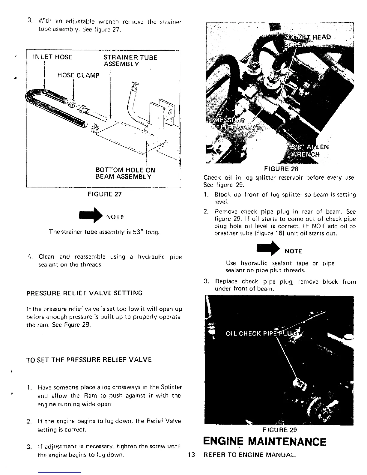 Yard-Man 24645-9 - Engine Maintenance; Pressure Relief Valve Setting; To Set the Pressure Relief Valve