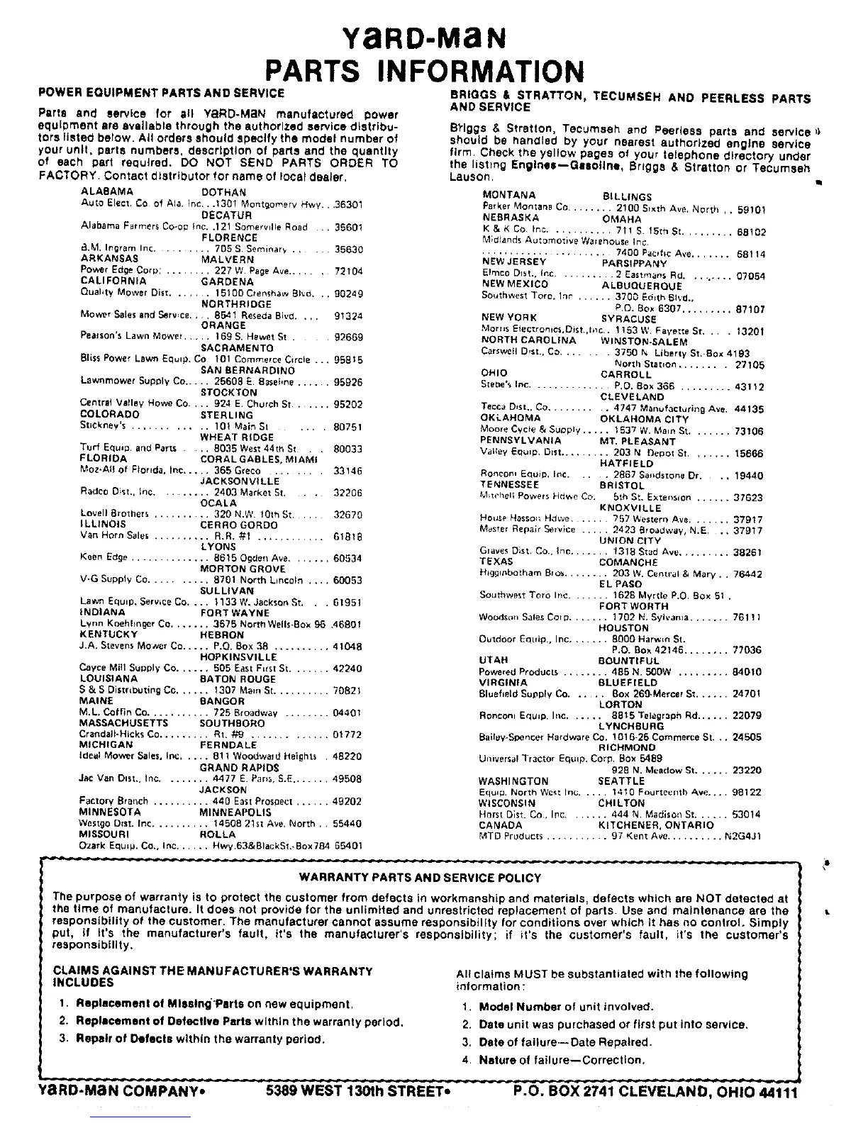 Yard-Man 24645-9 - Parts Information