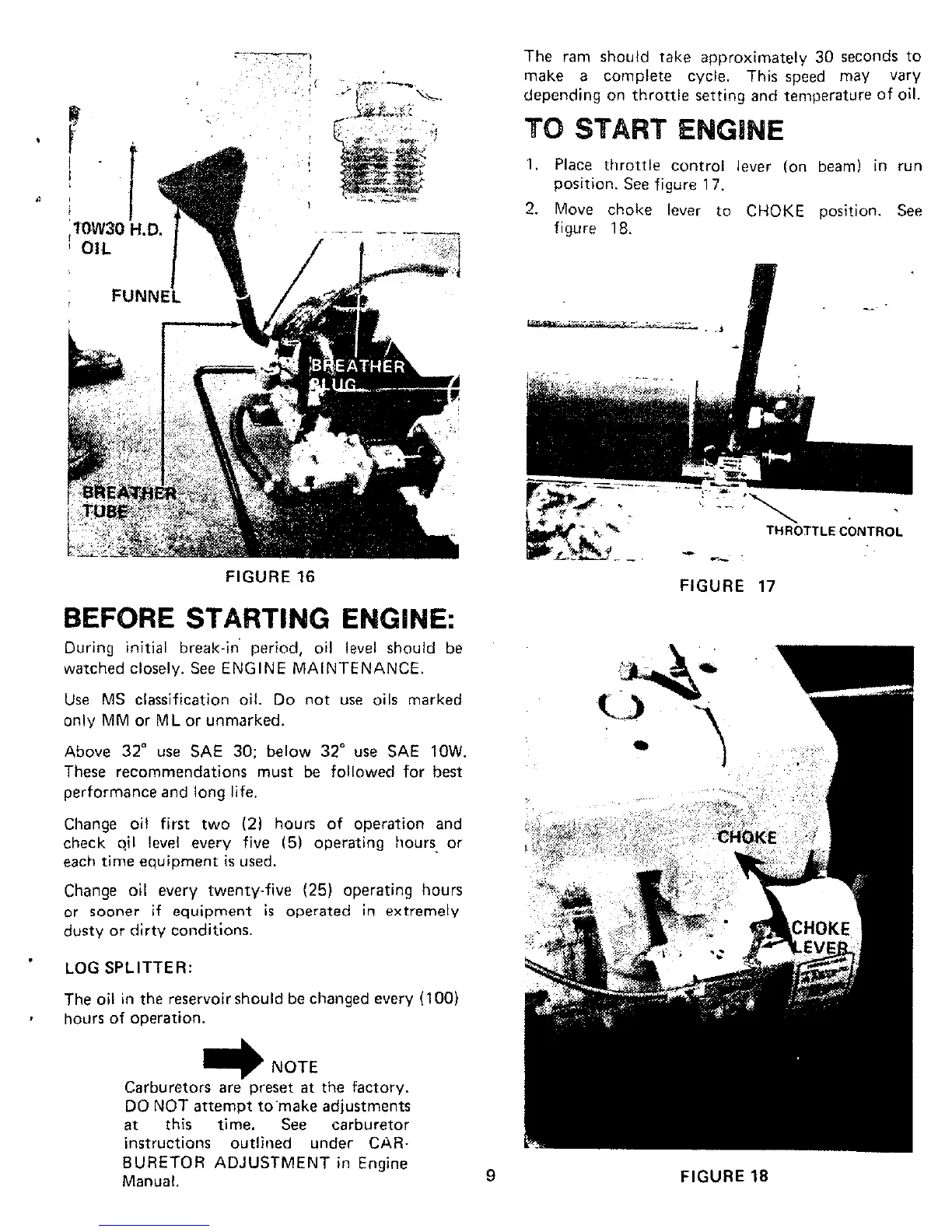 Yard-Man 24645-9 - Before Starting Engine; To Start Engine; Log Splitter