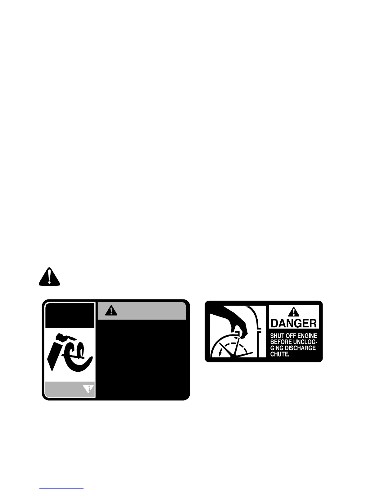 • Never operate snow thrower without guards, plates,