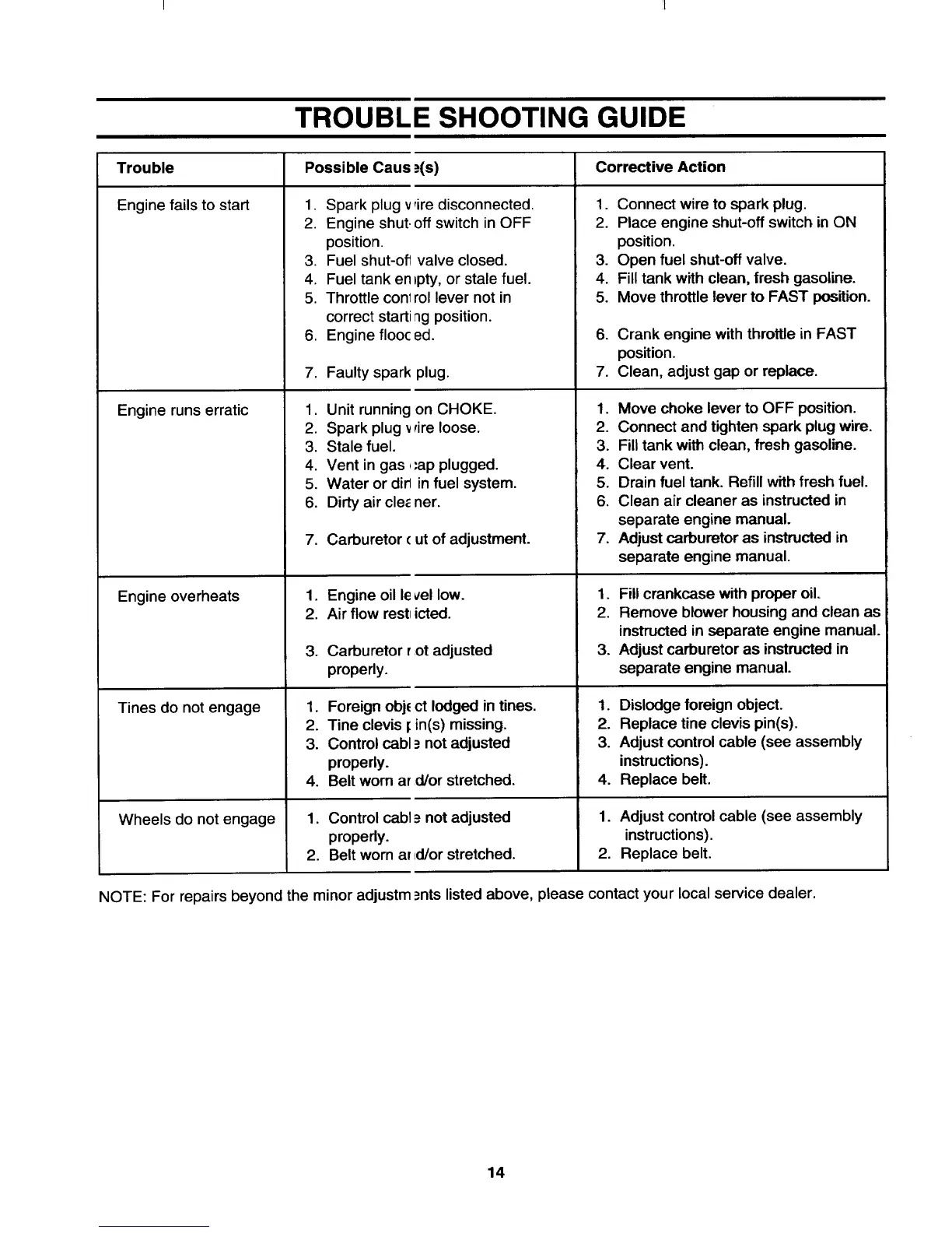 Yard-Man 447 - TROUBLE SHOOTING GUIDE