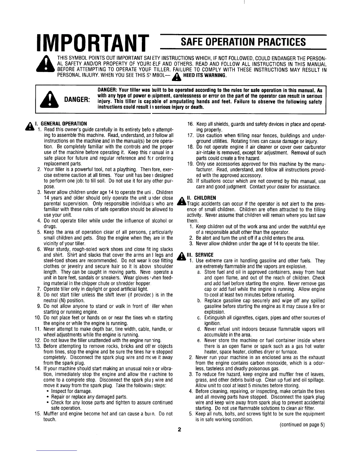 Yard-Man 447 - SAFE OPERATION PRACTICES; GENERAL OPERATION; CHILDREN; SERVICE