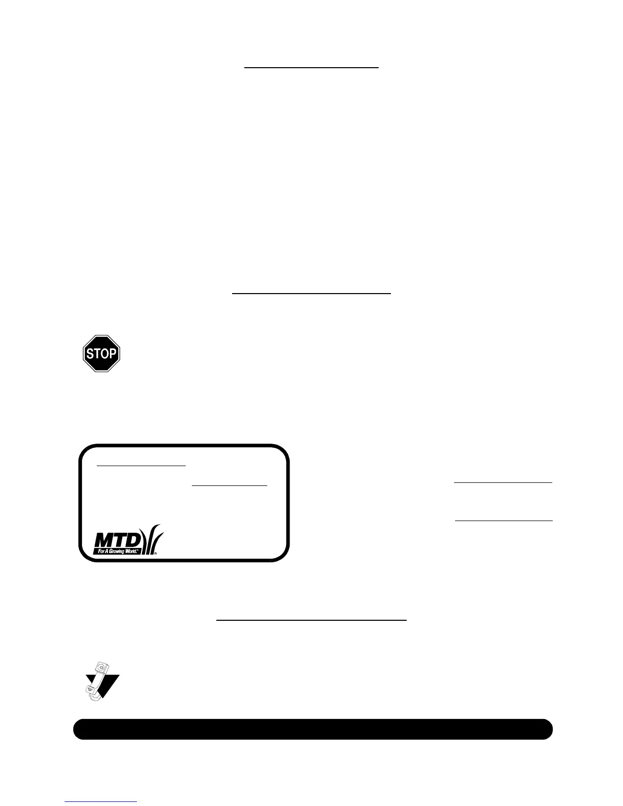 center of the rear tine shield. A sample model plate is explained below. For future reference, please