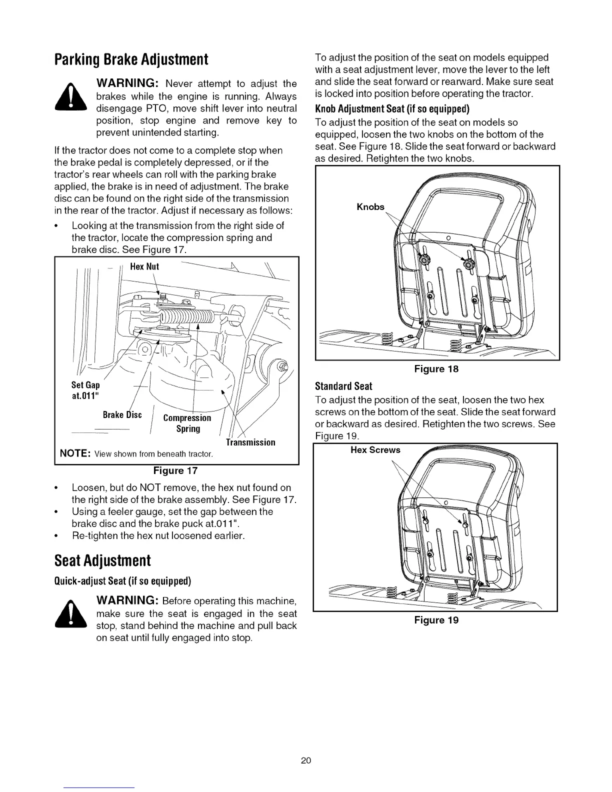 seat. See Figure 18. Slide the seat forward or backward
