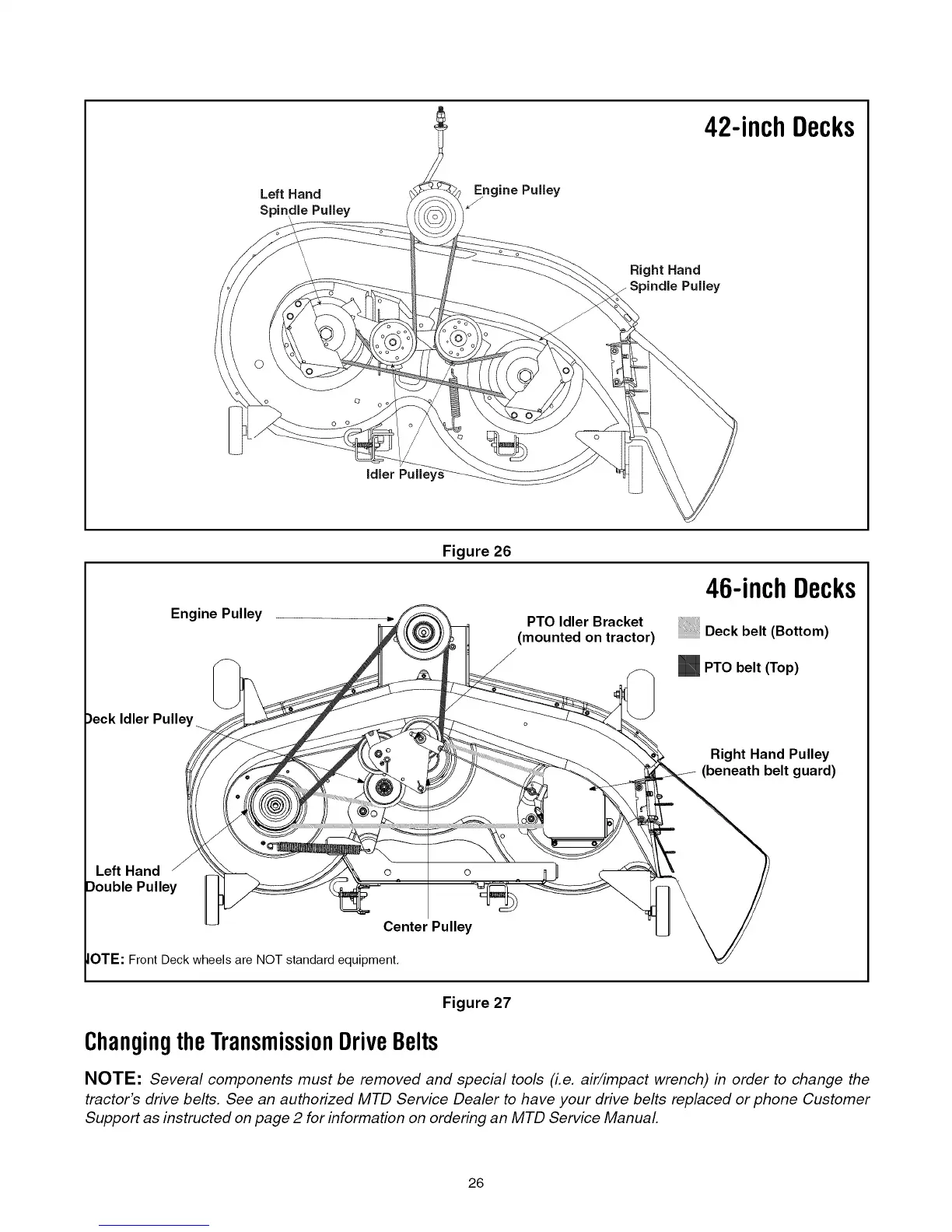 tractor's drive belts. See an authorized MTD Service Dealer to have your drive belts replaced or phone Customer