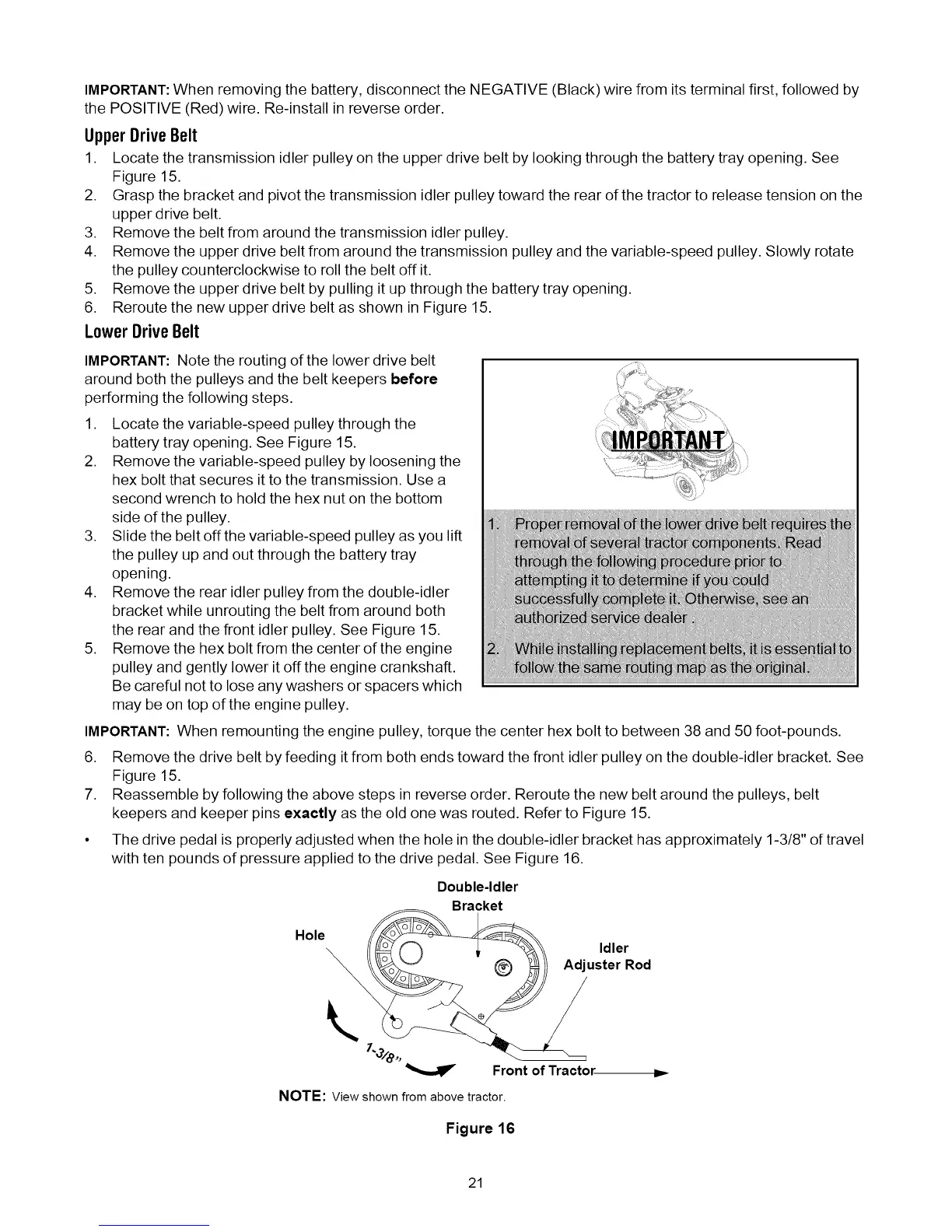 the rear and the front idler pulley. See Figure 15.