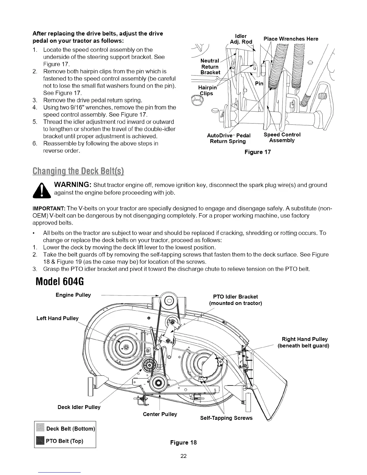 IMPORTANT:The V-belts on your tractor are specially designed to engage and disengage safely. A substitute (non-