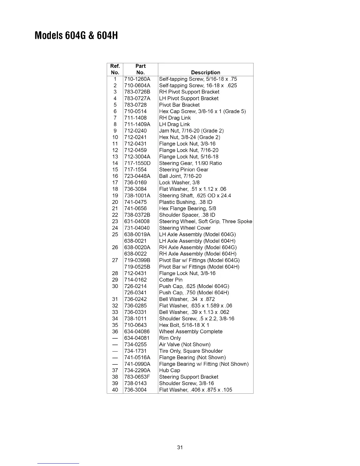 LH Axle Assembly (Model 604H)
