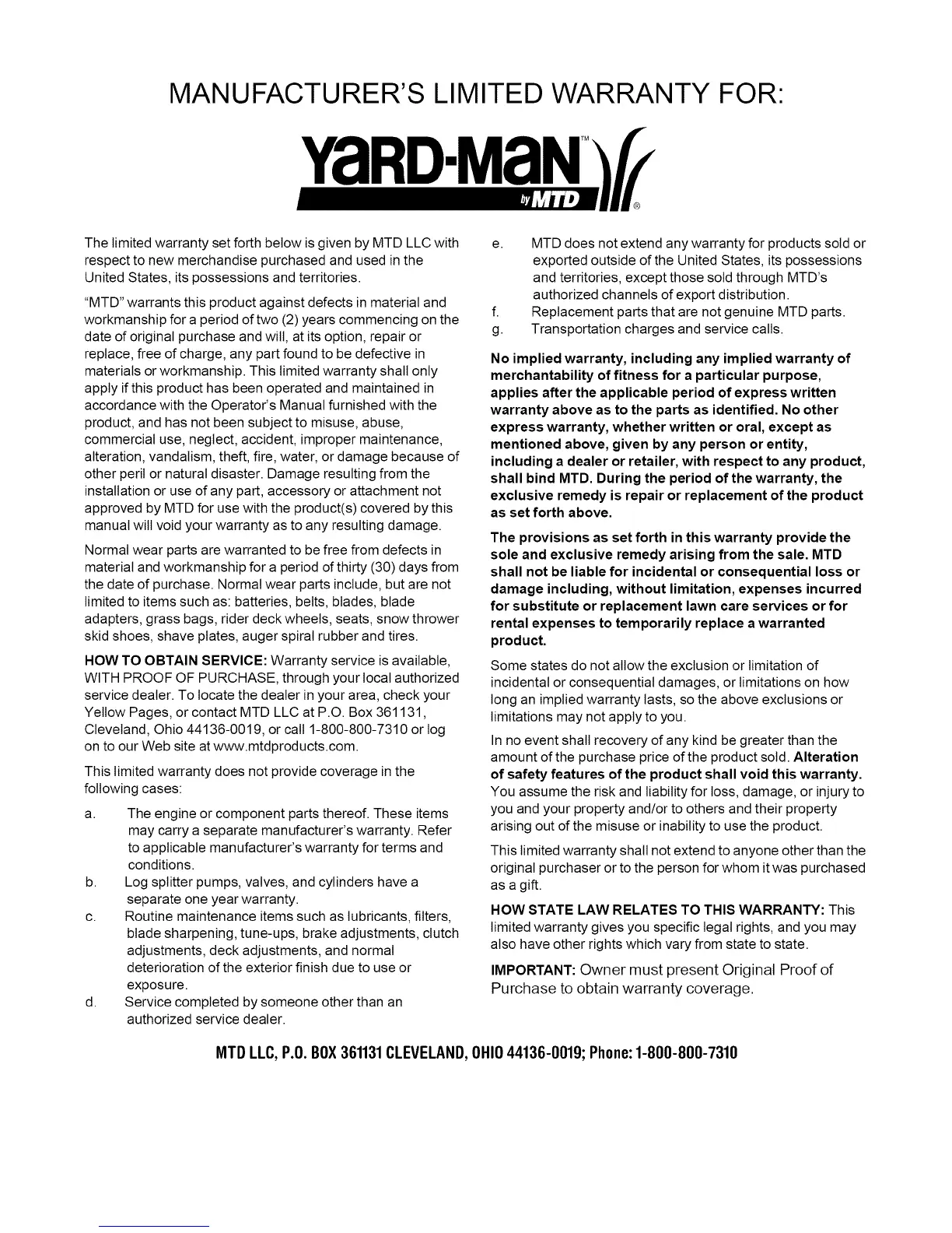 MTD LLC, P.O.BOX361131CLEVELAND,OHIO44136-0019; Phone:1-800-800-7310