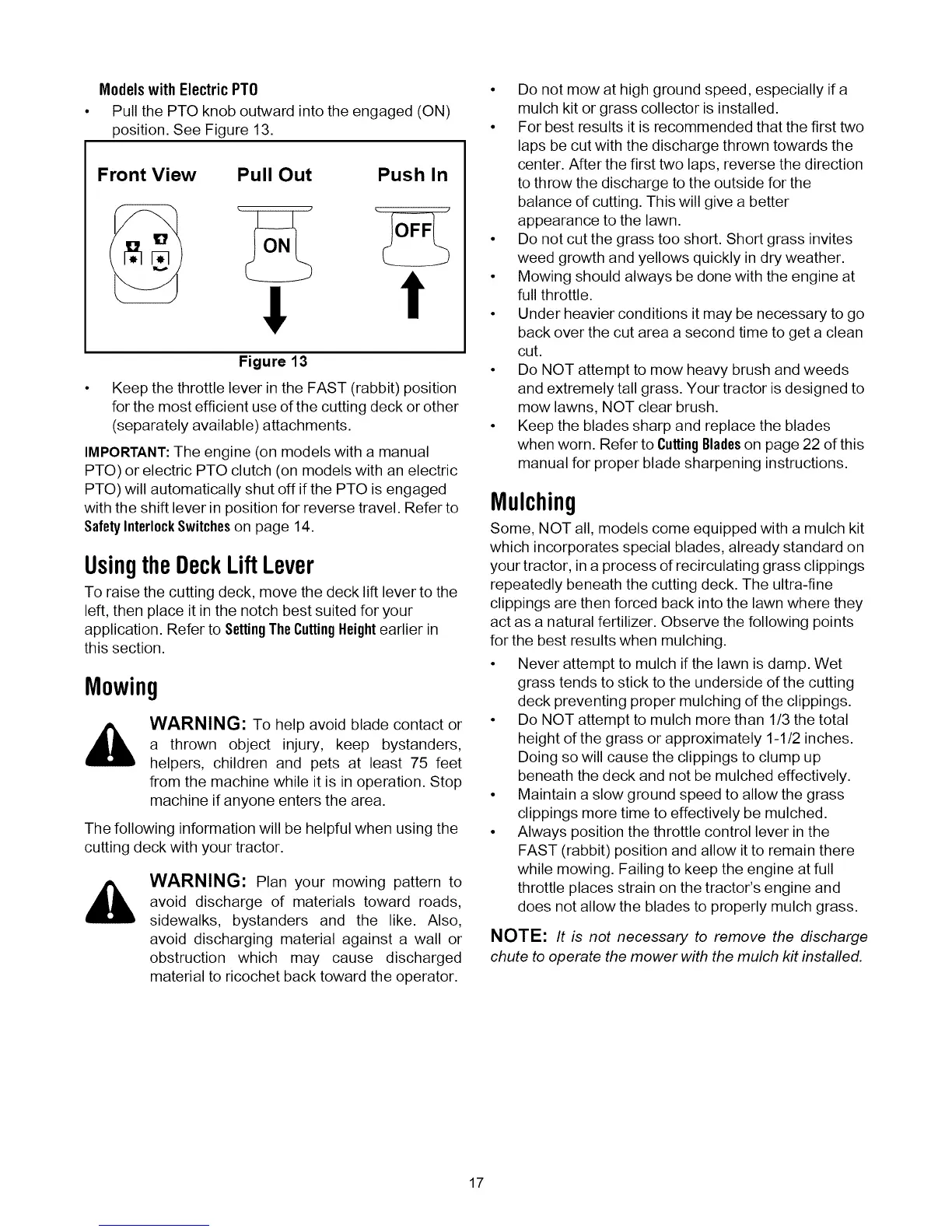 beneath the deck and not be mulched effectively.