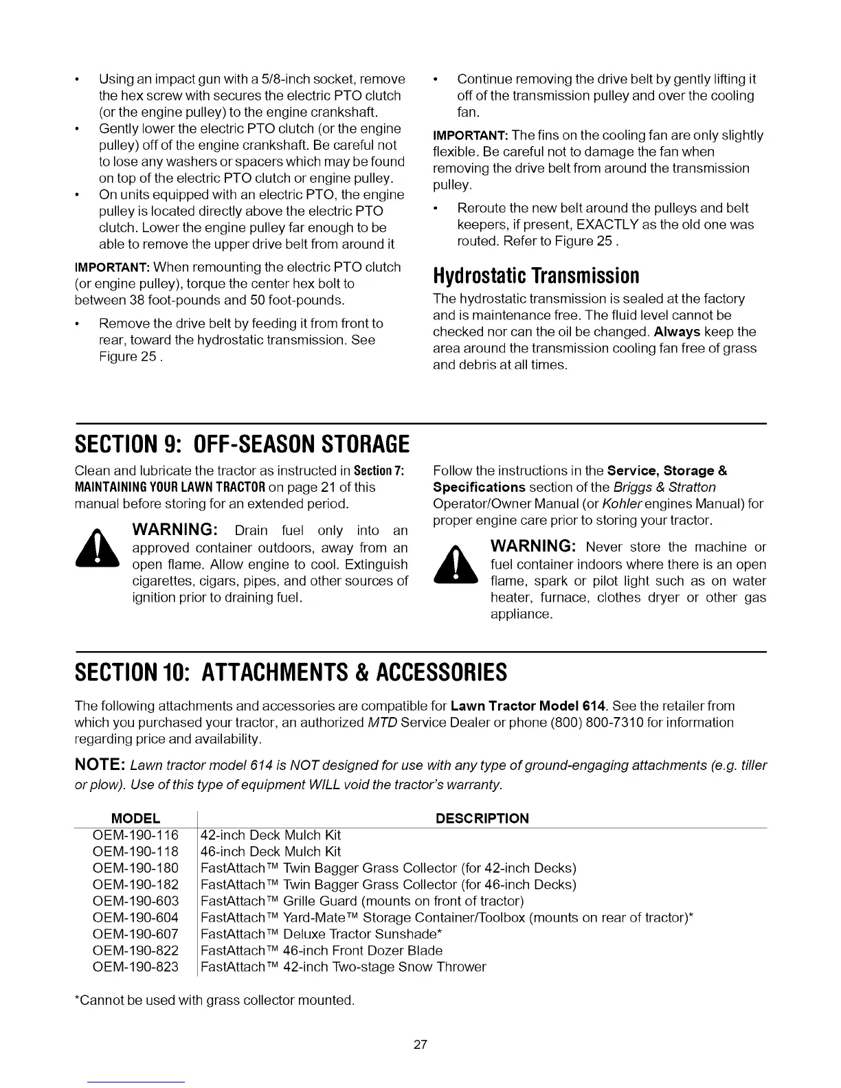 NOTE: Lawn tractor model 614 is NOT designed for use with any type of ground-engaging attachments (e.g. tiller