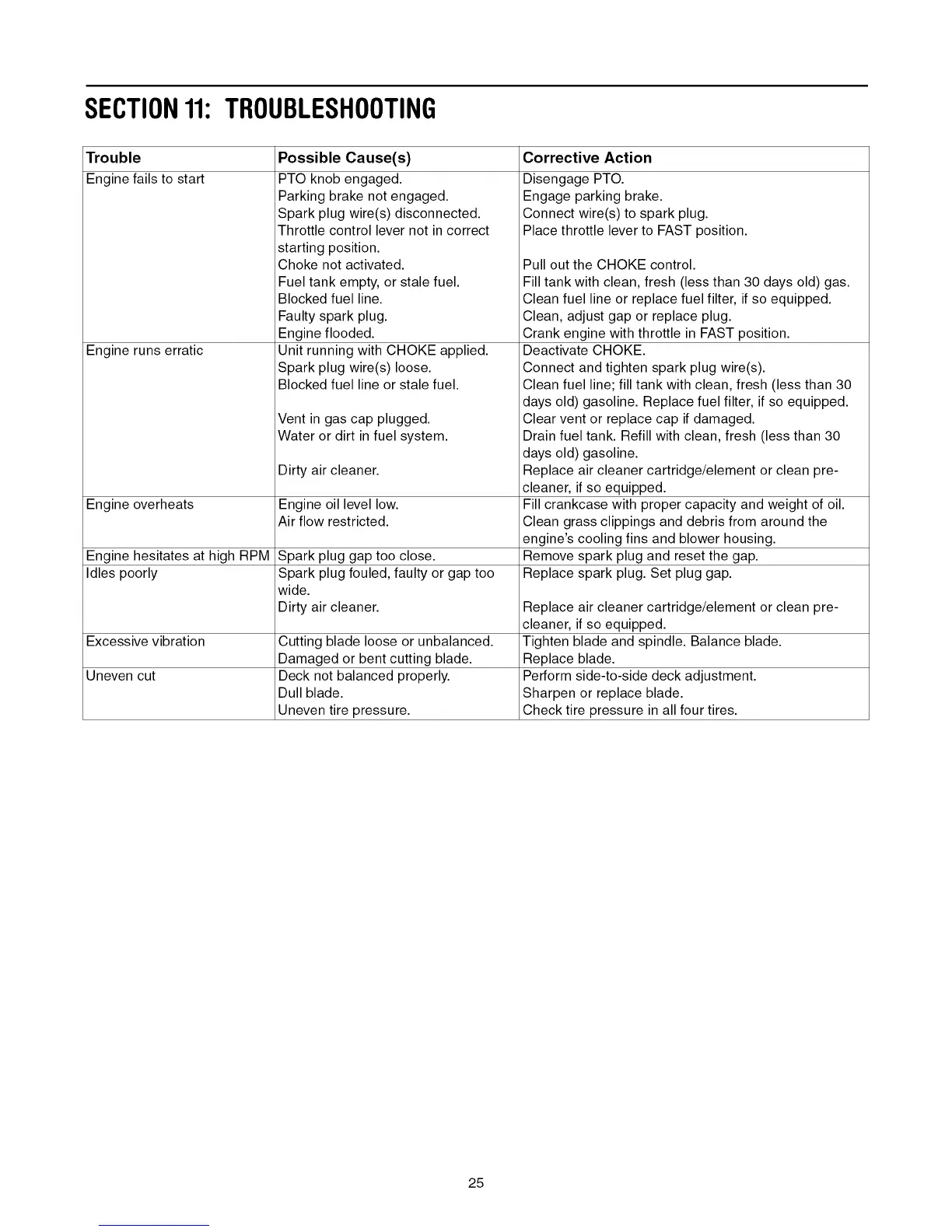 Engine hesitates at high RPM Spark plug gap too close. Remove spark plug and reset the gap.