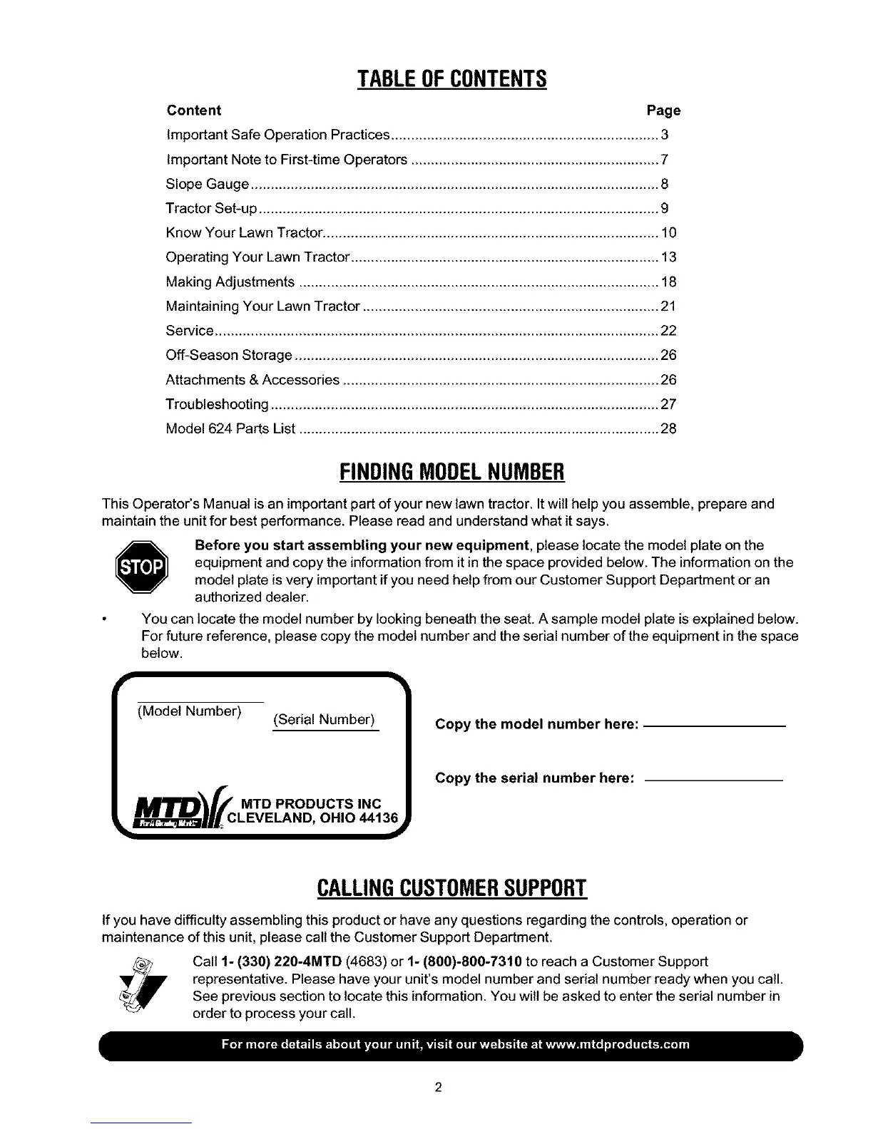 Call 1- (330) 220-4MTD (4683) or 1- (800)-800-7310 to reach a Customer Support