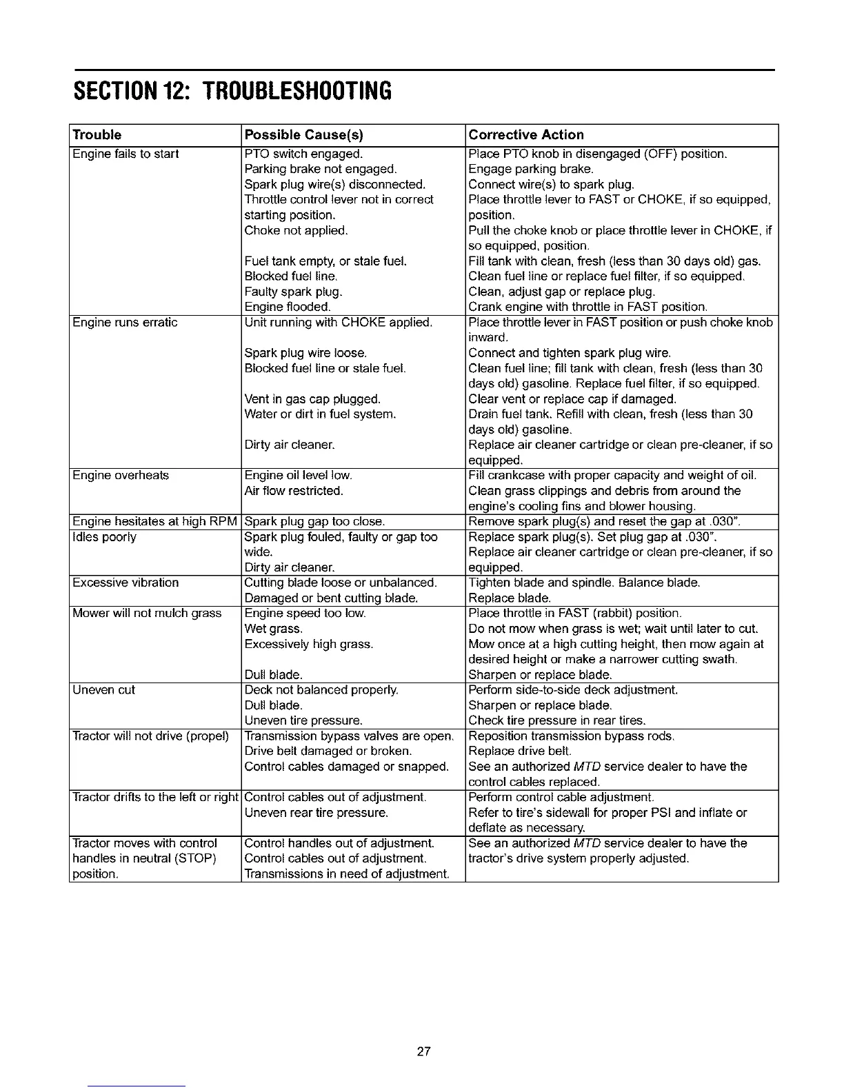 See an authorized MTD service dealer to have the