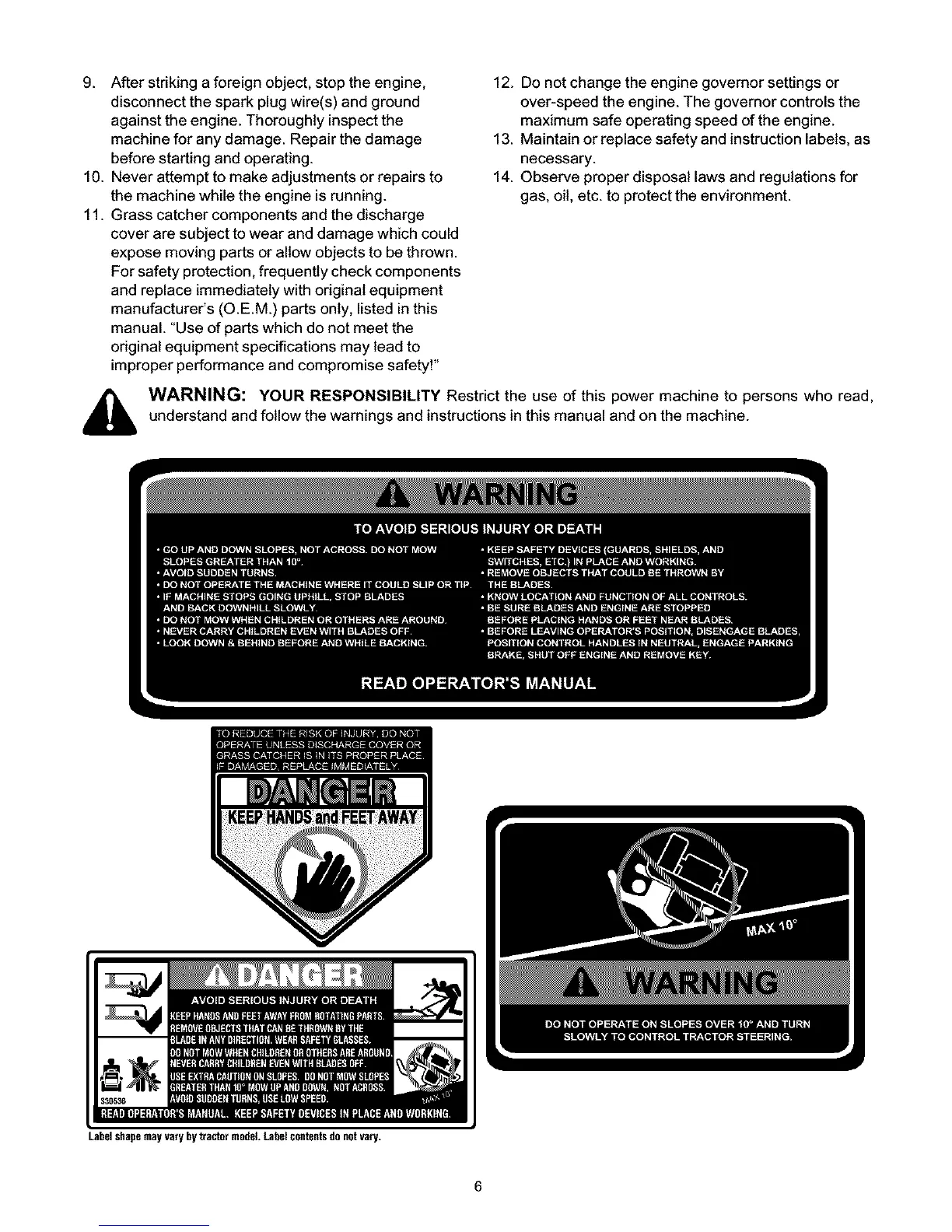 i_ WARNING: YOUR RESPONSIBILITY Restrict the use of this power machine to persons who read,