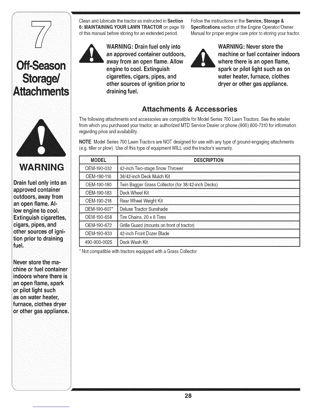 fromwhichyoupurchasedyourtractor,an authorizedMTDServiceDealeror phone(800) 800-7310forinformation