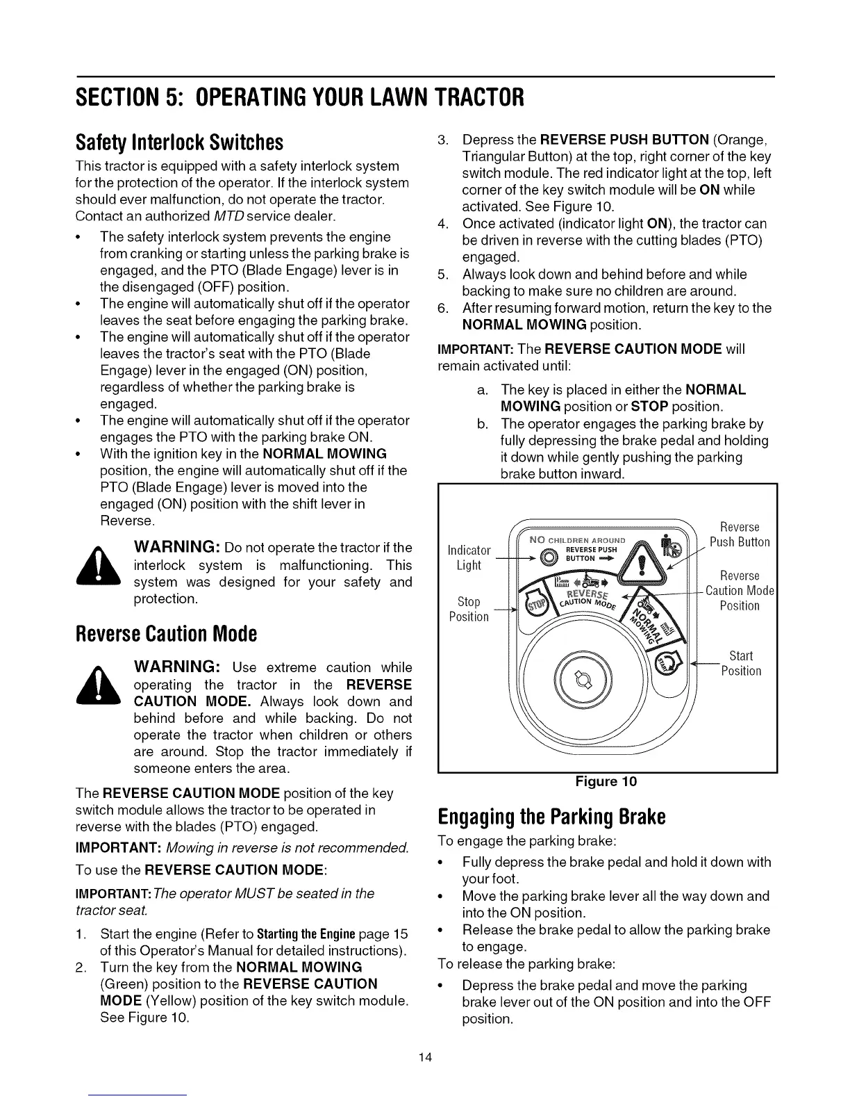 SECTION5: OPERATINGYOURLAWNTRACTOR