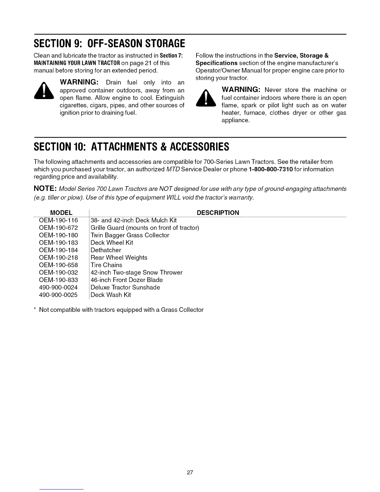 NOTE: Model Series 700 Lawn Tractors are NOT designed for use with any type of ground-engaging attachments