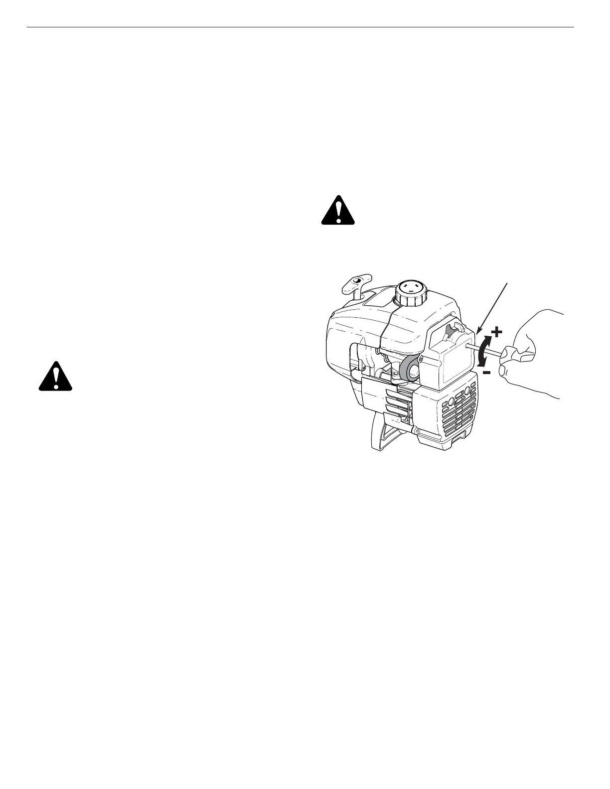vis de réglage de ralenti. Voir Entretien du filtre à air.
