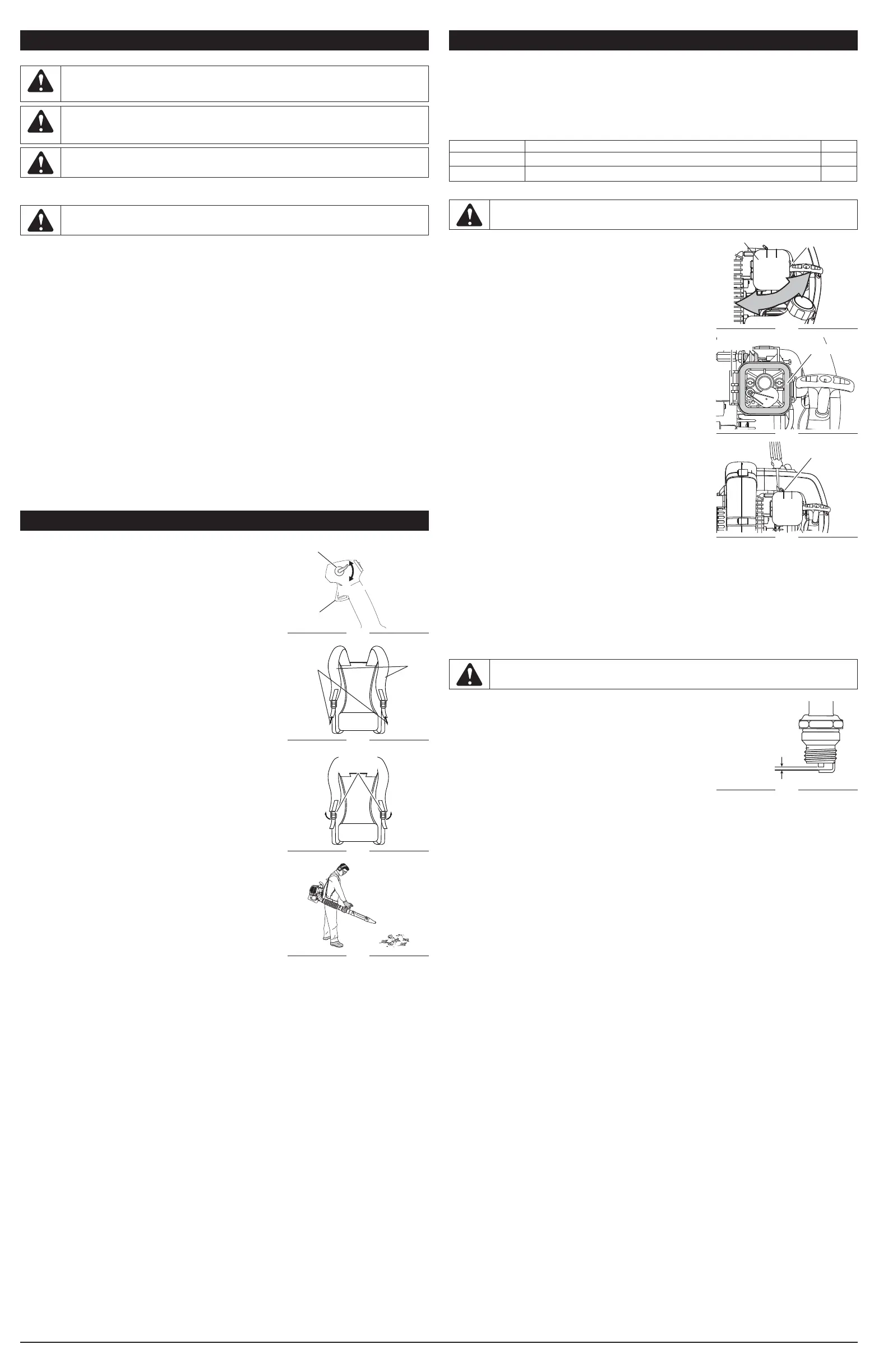 • Never store the unit with fuel in the tank where fumes may reach an open fl ame or spark.