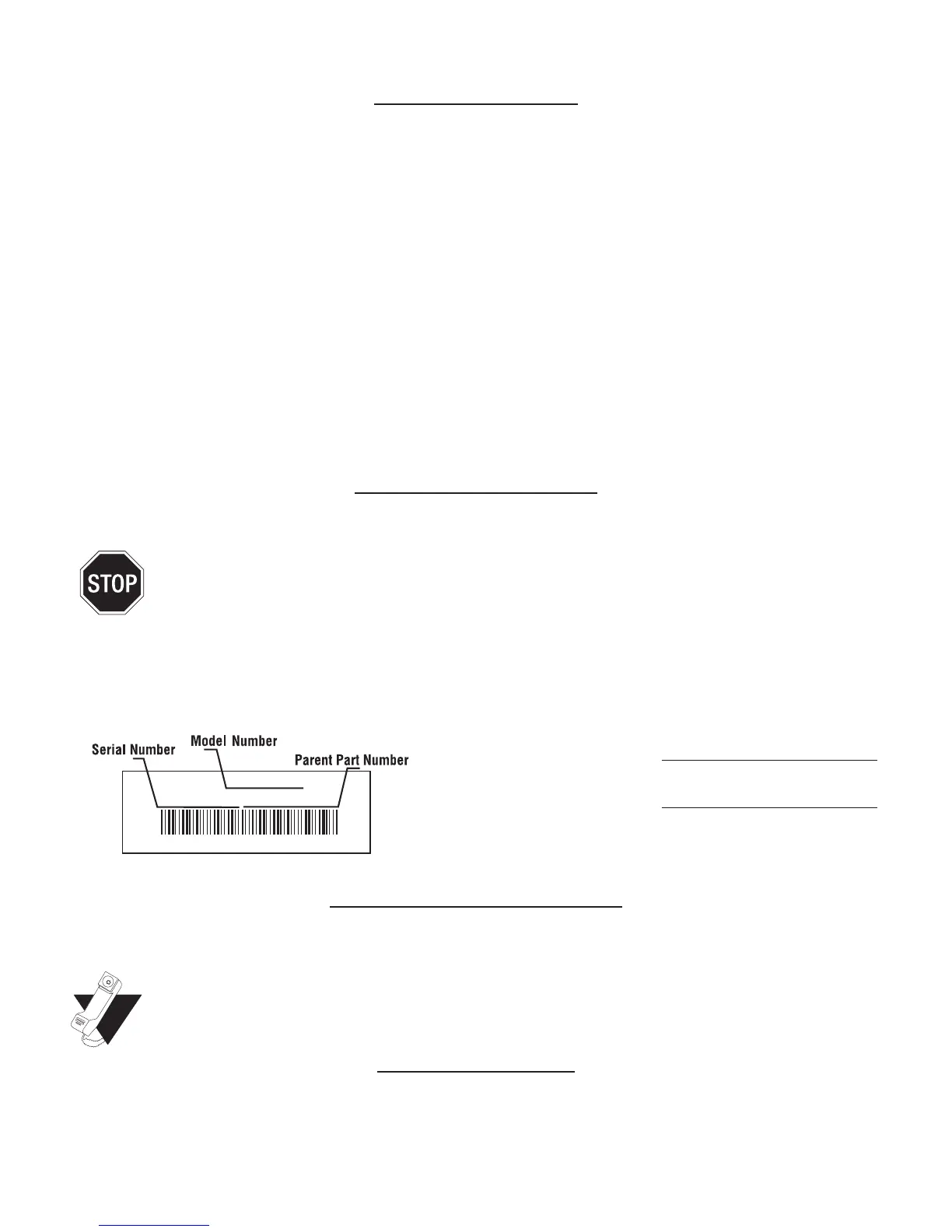 • The model number is located on the engine. A sample model plate is shown and explained below. For future