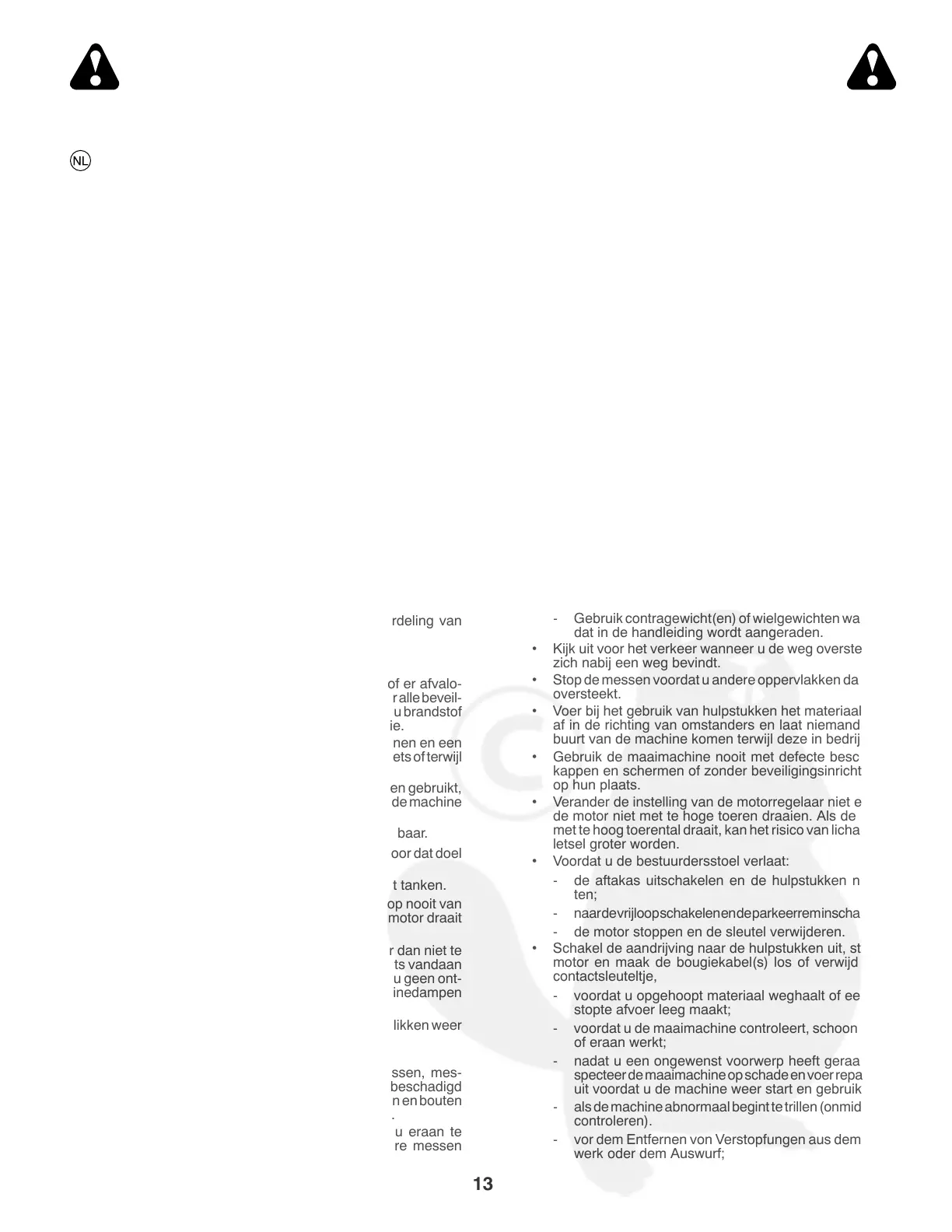 • Gebruik de maaimachine nooit met defecte bescherm-