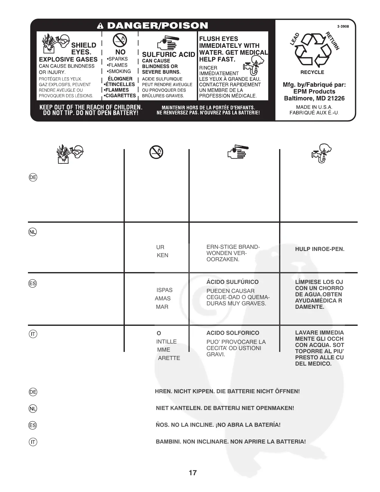 TENERE LONTANO DALLA PORTATA DEI BAMBINI. NON INCLINARE. NON APRIRE LA BATTERIA!